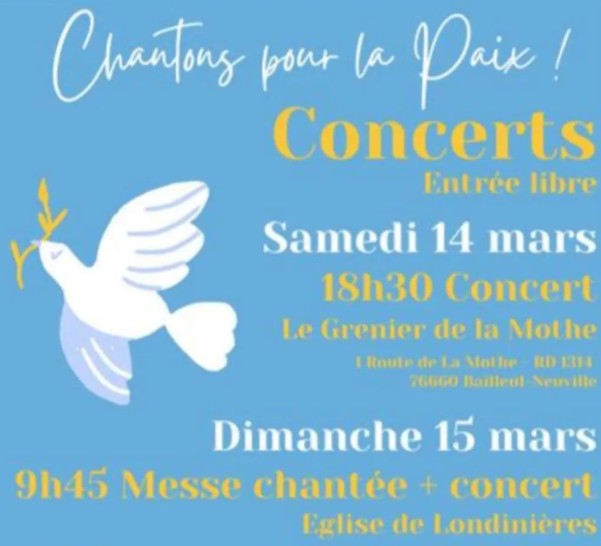 I have a dream et La prière pour la paix reprises par Thérèse Louvet et la Manécanterie de Notre-Dame du Havre / Samedi 14 et dimanche 15 mars / Concert au Grenier de la Mothe / Messe à l’église de Londinieres.